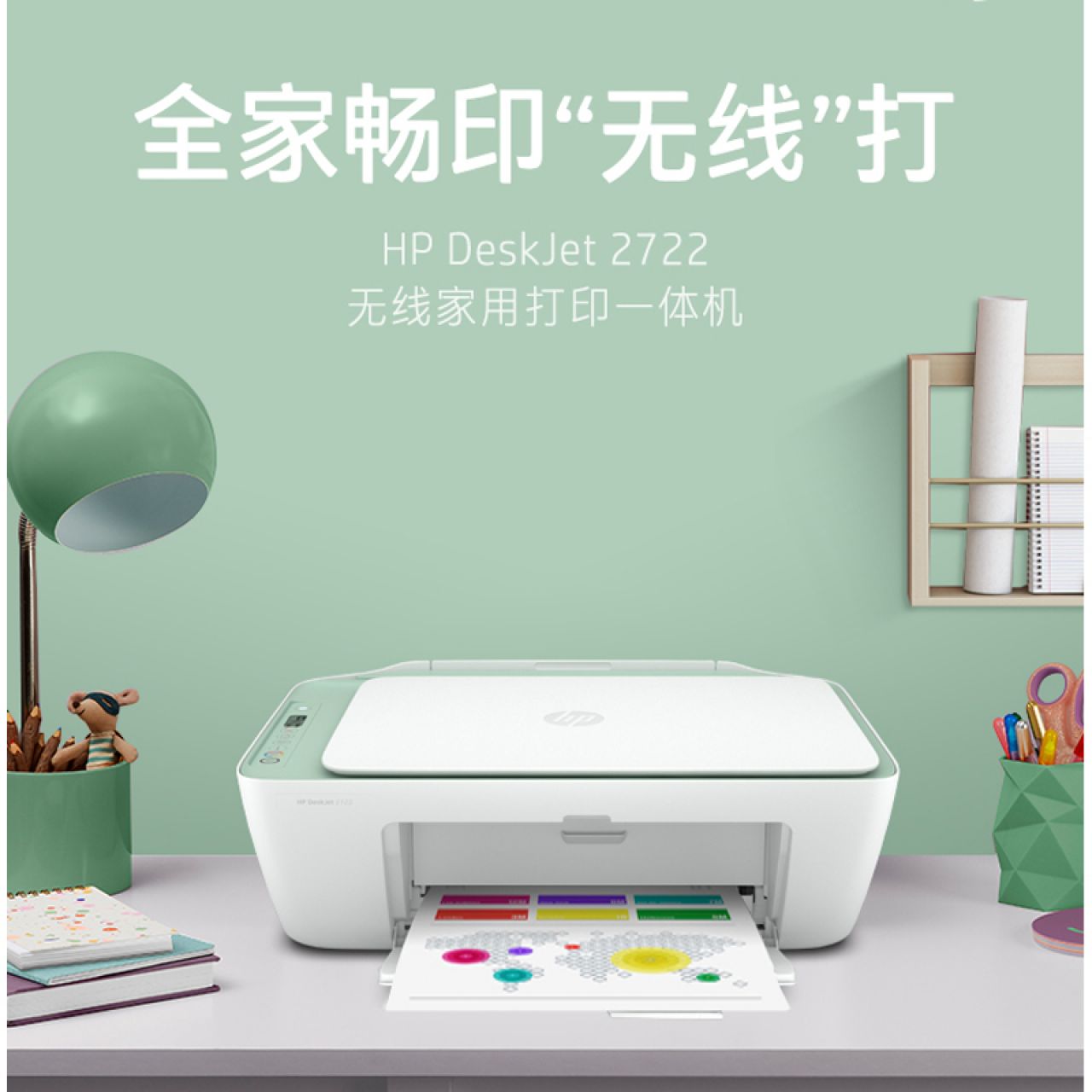 惠普HP DeskJet 2722 A4彩色无线家用照片打印机多功能复印扫描一体机